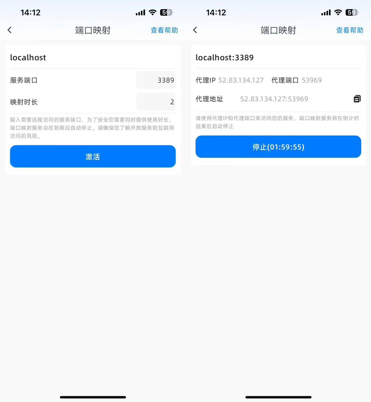 - 激活穿透服务:完成上述配置后,点击页面中的 “激活” 按钮,启动端口穿透服务。